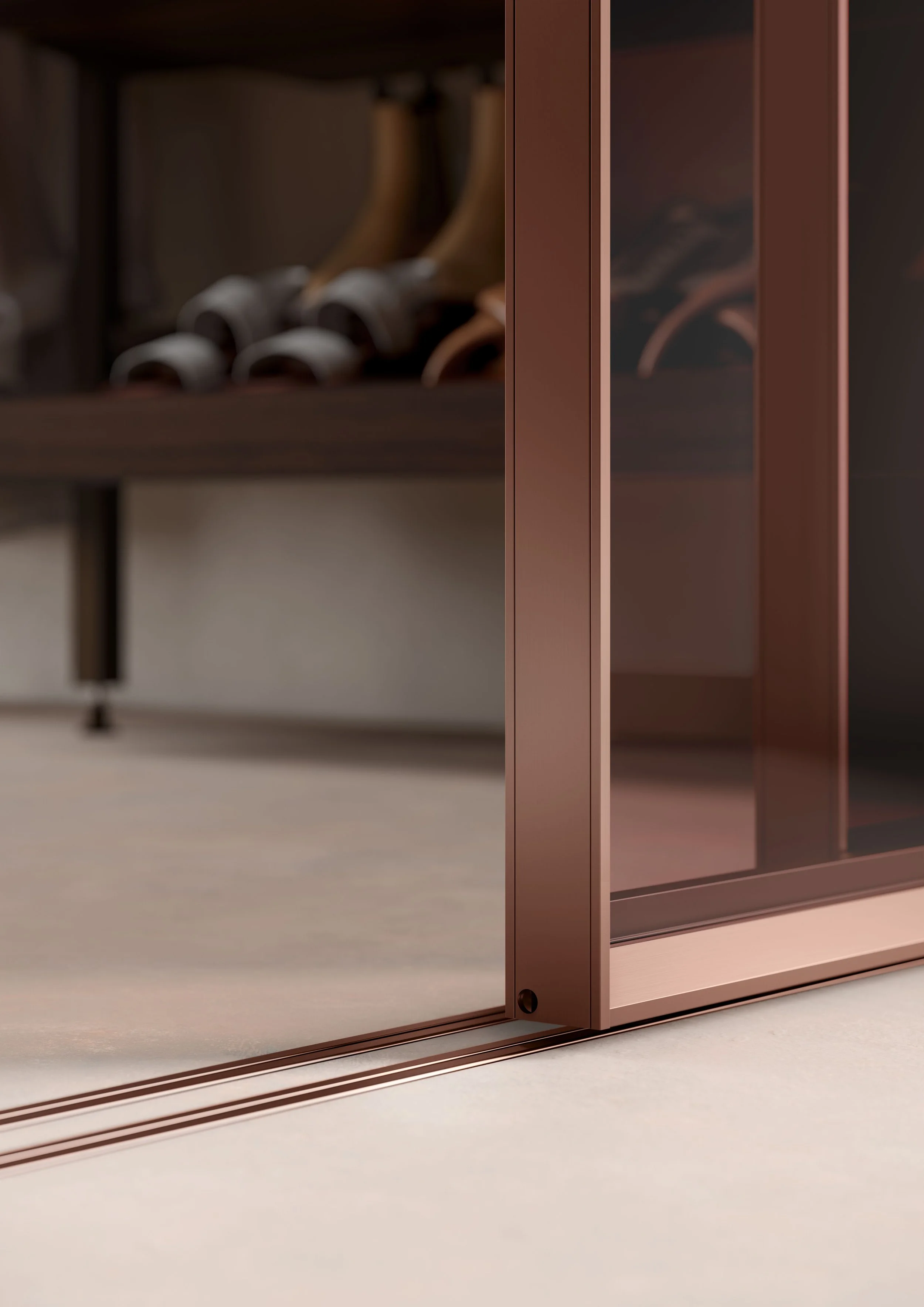 raumplus - горни и долни релси: долните релси трябва да се почистват редовно, за да не се покрият долните ролки с мръсотия. За да се почистят релсите, дръпнете вратите в страни, за да се отвори дължината на цялата релса. Когато чистите пода, прахосмучете фугите на долните релси и след това избършете с леко влажен парцал. Горните релси могат да бъдат почистени с леко навлажнен парцал със сапун.
